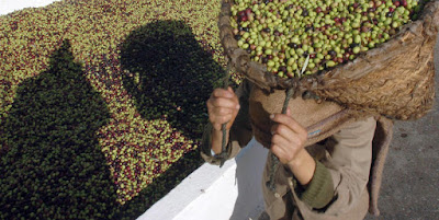 Un lavoratore tunisino trasporta un sacco di olive a Djedeida, vicino Tunisi (FETHI BELAID/AFP/Getty Images)